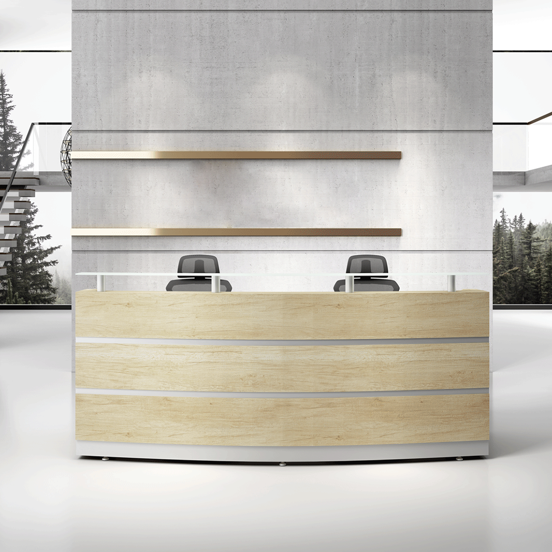 • Fabricada en melamina color carvallo con insertos en melamina aluminizada.